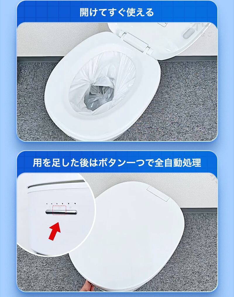 災害・断水時の非常用トイレとしてはもちろん、防災備蓄・災害時の断水対策、介護用(在宅介護/老人ホーム)から、車中泊・キャンピングカー・船舶・ボートやキャンプまで幅広く対応可能、衛生的に処理できて後片付けがラク。いざという時も日常も、清潔な安心を。当店の防災士が開発段階で意見・助言を行いました。