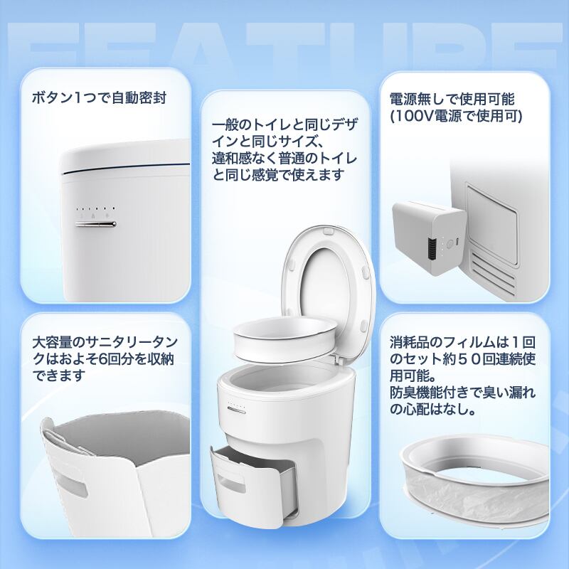 災害・断水時の非常用トイレとしてはもちろん、防災備蓄・災害時の断水対策、介護用(在宅介護/老人ホーム)から、車中泊・キャンピングカー・船舶・ボートやキャンプまで幅広く対応可能、衛生的に処理できて後片付けがラク。いざという時も日常も、清潔な安心を。当店の防災士が開発段階で意見・助言を行いました。