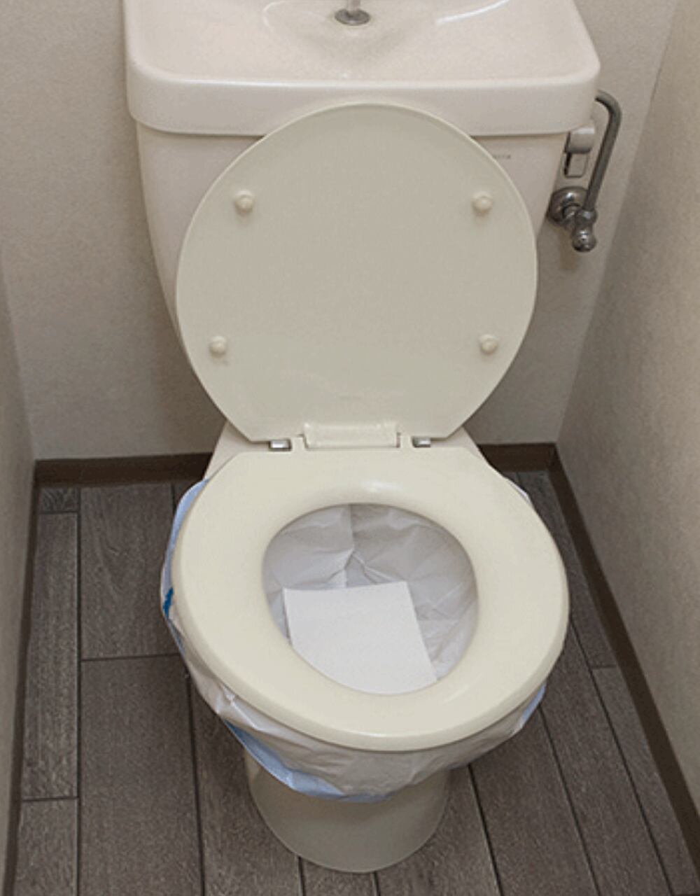ロール状のトイレ袋をくるくると引き出して使用します。
