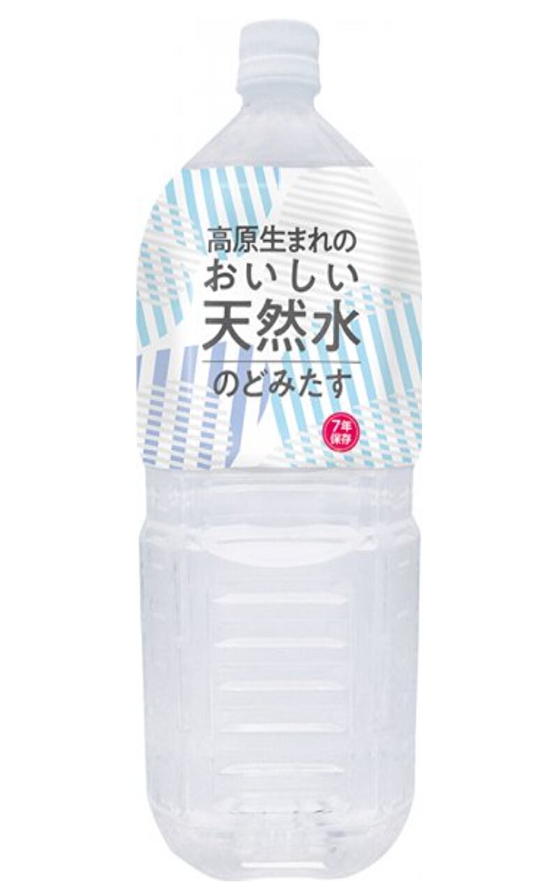●7年間保存できる「のどみたす」は硬度14度の軟水を摂氏120度で加熱殺菌し、耐熱容器に充填することにより、長期保存が可能です。