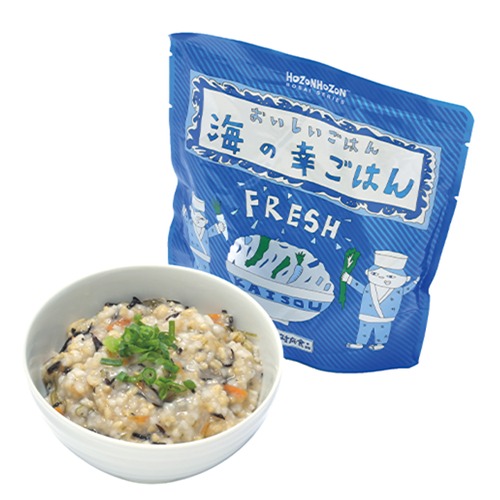 ・国産発芽玄米にひじき、人参、昆布、若布を加え自社謹製昆布エキス、魚醤等を隠し味に